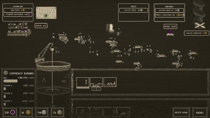 Upgrade your tavern to serve more drinks and keep the gold flowing. Every copper counts when there's a dungeon to dig.